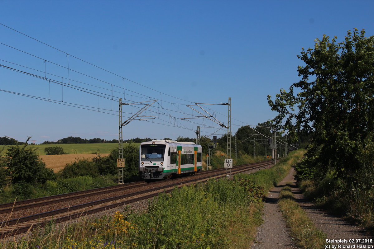 Ein 650 der Vogtlandbahn/Länderbahn fährt als Leerfahrt nach Atlantis durch Steinpleis in Richtung Plauen.