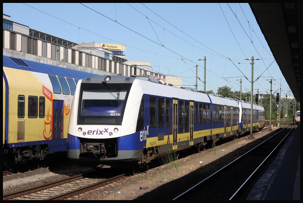 Eine Doppeleinheit von Erixx mit VT 622702 an der Spitze stand am 2.7.2018 um 9.20 Uhr auf einem Mittelgleis im HBF Hannover.