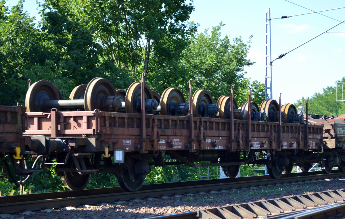 Flachwagen für den Radsatztransport der DB mit der Nr. 21 RIV 80 D-DB 3404 108-5 Kkks-t 447 am 03.07.18 Berlin-Wuhlheide.