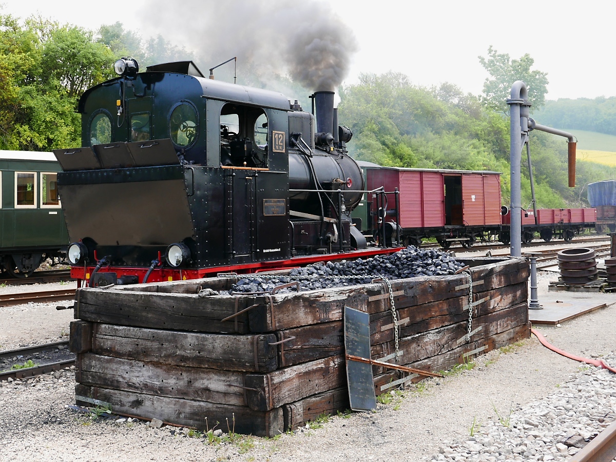 Kohlebansen und Wasserkran der Härtsfeld-Museumsbahn in Neresheim beim Museumstag am 14.5.2015