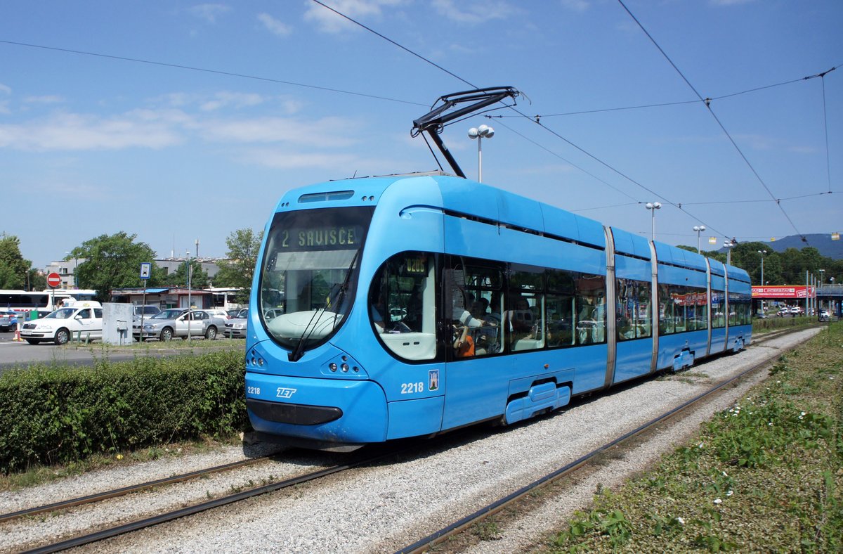 Kroatien / Straßenbahn Zagreb / Tramvaj Zagreb / Zagrebački Električni Tramvaj (ZET): CroTram TMK 2200 - Wagen 2218, aufgenommen im Juni 2018 in der Nähe der Haltestelle  Autobusni Kolodvor  im Stadtgebiet von Zagreb.