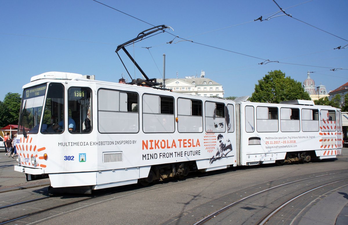 Kroatien / Straßenbahn Zagreb / Tramvaj Zagreb / Zagrebački Električni Tramvaj (ZET): Tatra KT4YU - Wagen 302, aufgenommen im Juni 2018 am Hauptbahnhof in Zagreb.