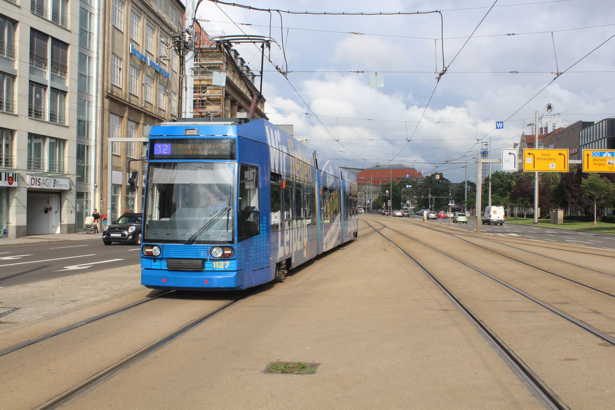 Leipzig LVB SL 12 (DWA NGT8 (LVB-Typ 36) 1127) Tröndlinring. - Die Straße ist nach dem ehemaligen Oberbürgermeister der Stadt, Carlo Bruno Tröndlin (1835 - 1908), benannt worden.
