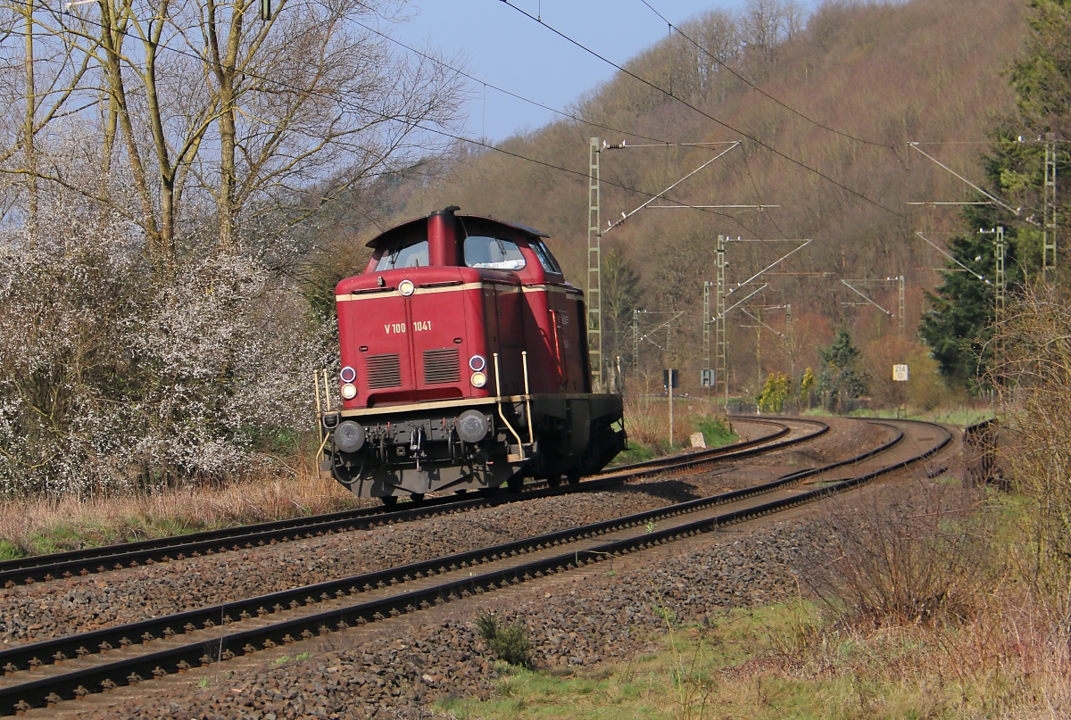 NeSA V100 1041 als Tfzf in Fahrtrichtung Bebra. Aufgenommen am 02.04.2016 in Lispenhausen.