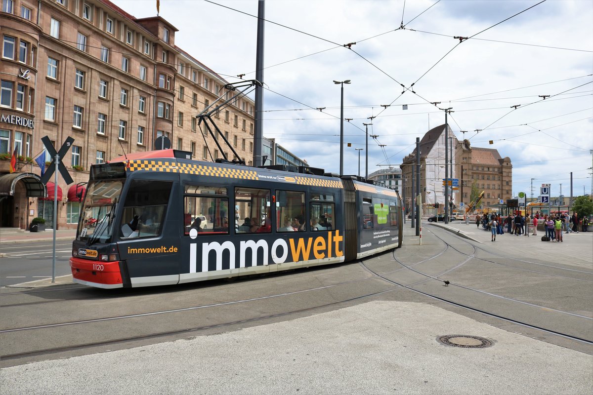 Nürnberger Verkehrs AG Adtranz GT8N Wagen 1120 am 24.06.18 in Nürnberg Hbf