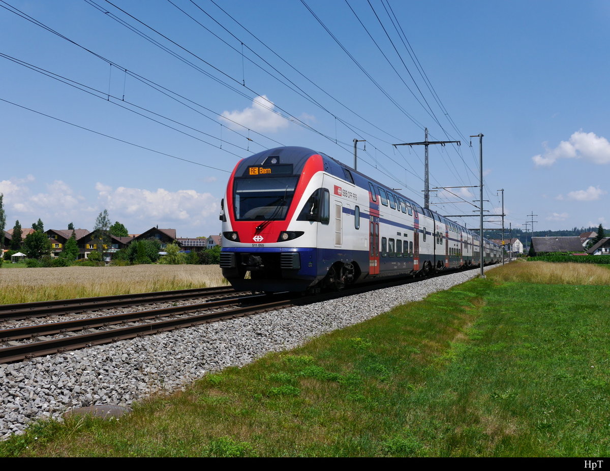 SBB - Triebzug RABe 511 055 unterwegs bei Lyssach nach Bern am 07.07.2018