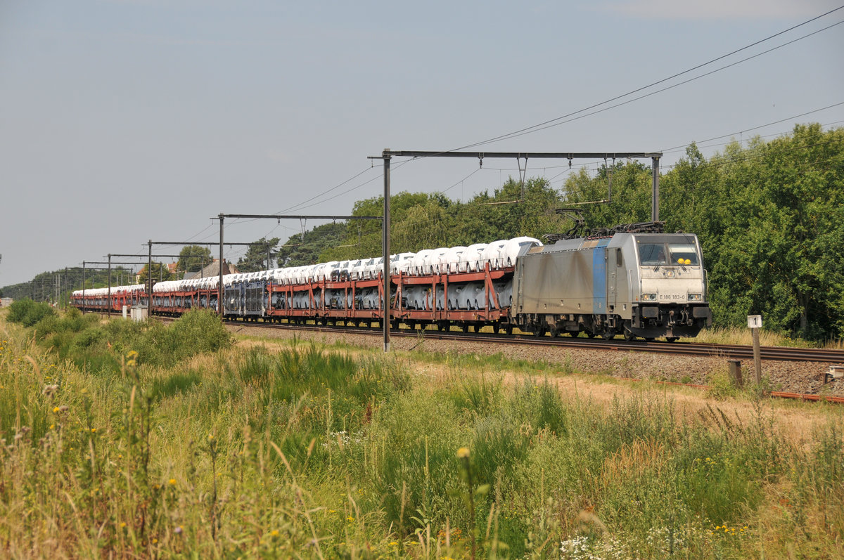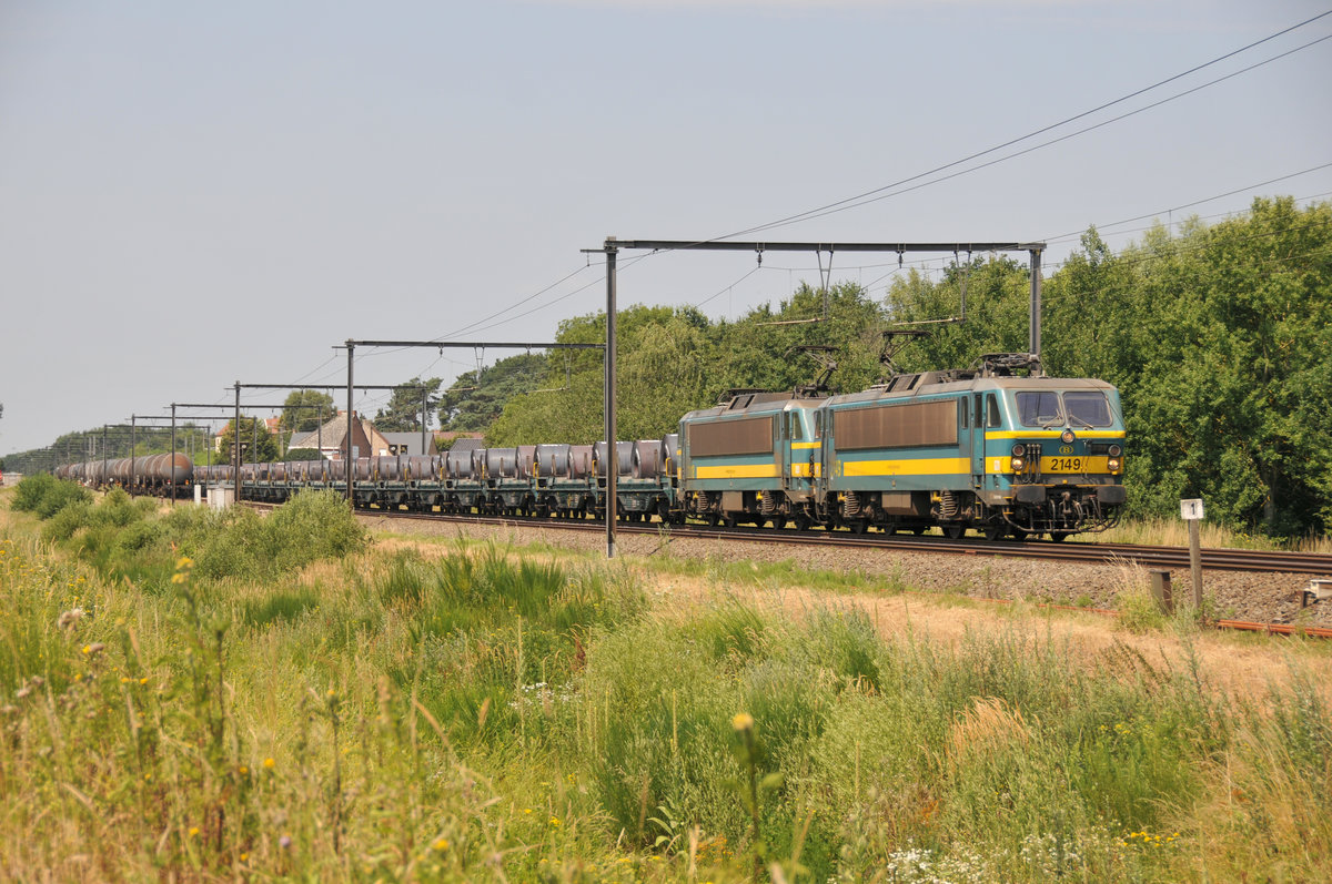 Überraschend kam auch der Coilzug durch Lummen, gezogen von den beiden Lineas-Loks 2149 und 2118. Aufnahme vom 06/07/2018.