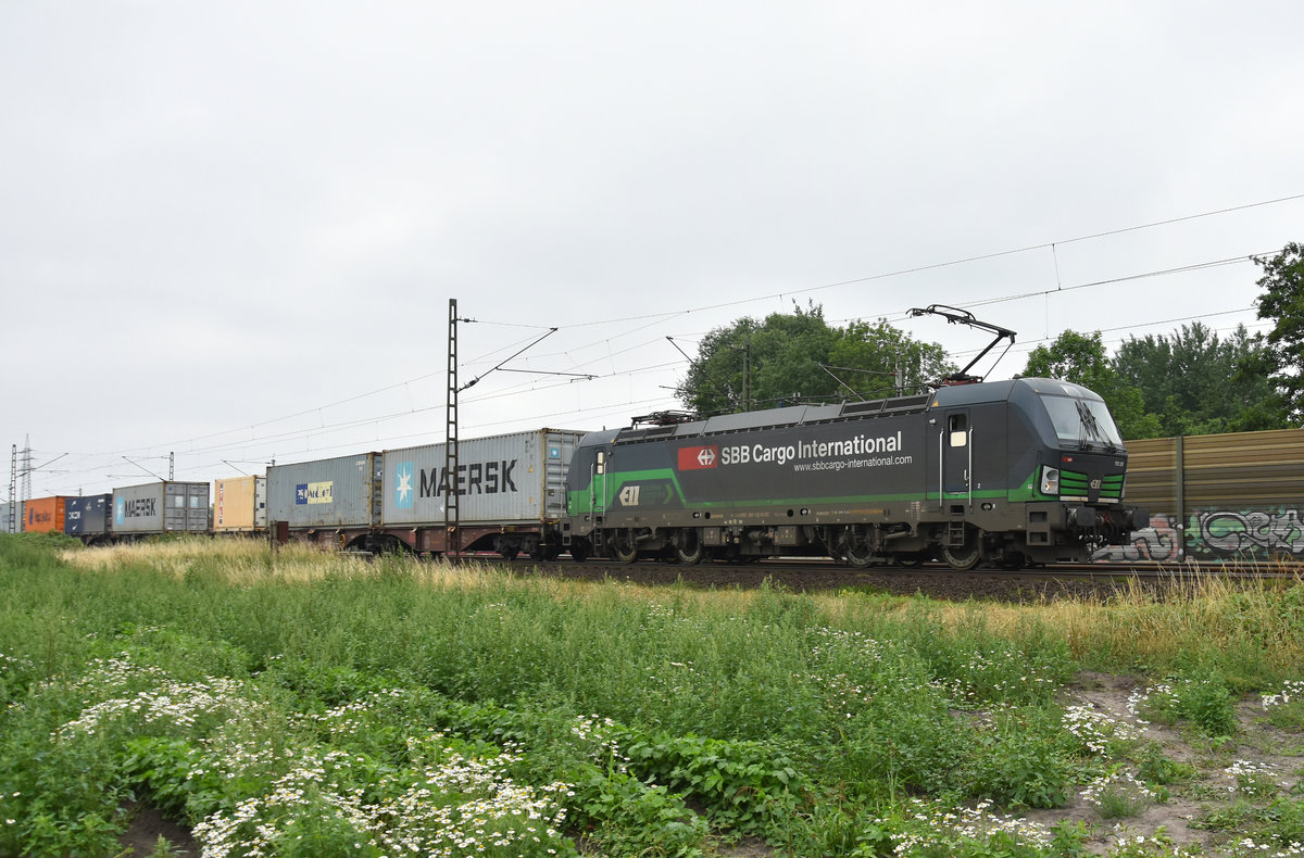 193 201-1 der ELL mit Container kommend aus Richtung Lüneburg. Höhe Bardowick, 26.06.2018.