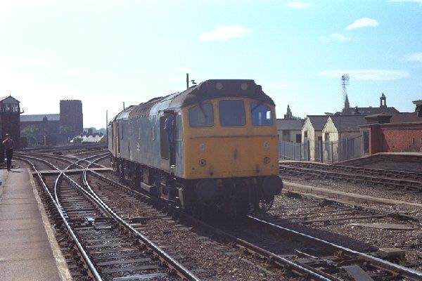 25325 + 25279 run round at Shrewsbury, with the 0730 Euston-Aberystwyth, 28/07/1984.