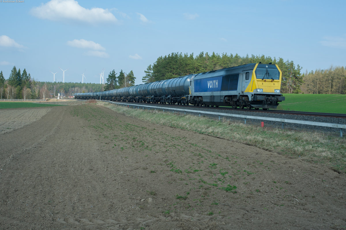 264 001 der Stock-Transport mit einem Kesselwagenzug nach Vohburg bei Marktleuthen, 02.04.2017