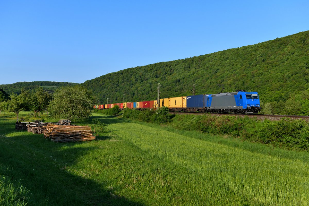 Am Morgen des 05. Mai 2018 konnte ich bei Wernfeld im Maintal den Containerzug DGS 43966 von Linz Vbf nach Dradenau aufnehmen. Zuglok war die von Alpha Trains angemietete 185 529.