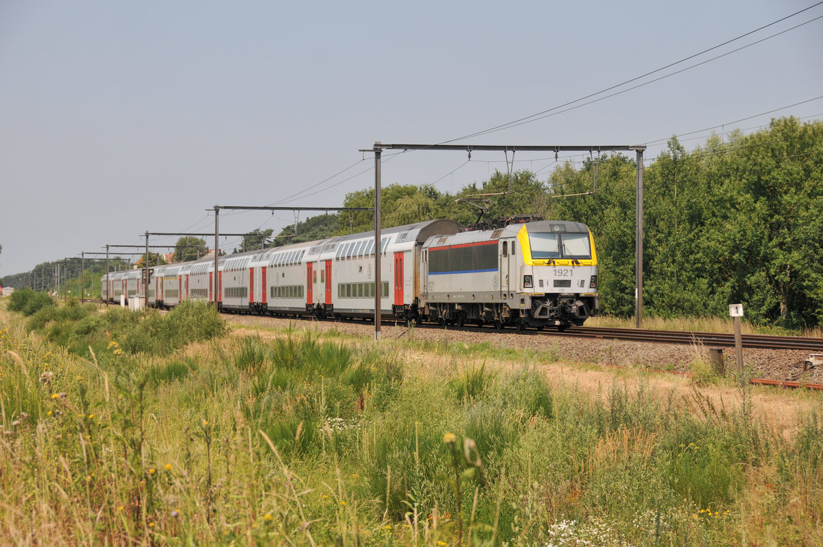 EuroSprinter 1921 der SNCB schiebt den IC durch Lummen Richtung Diest. Aufnahme vom 06/07/2018.