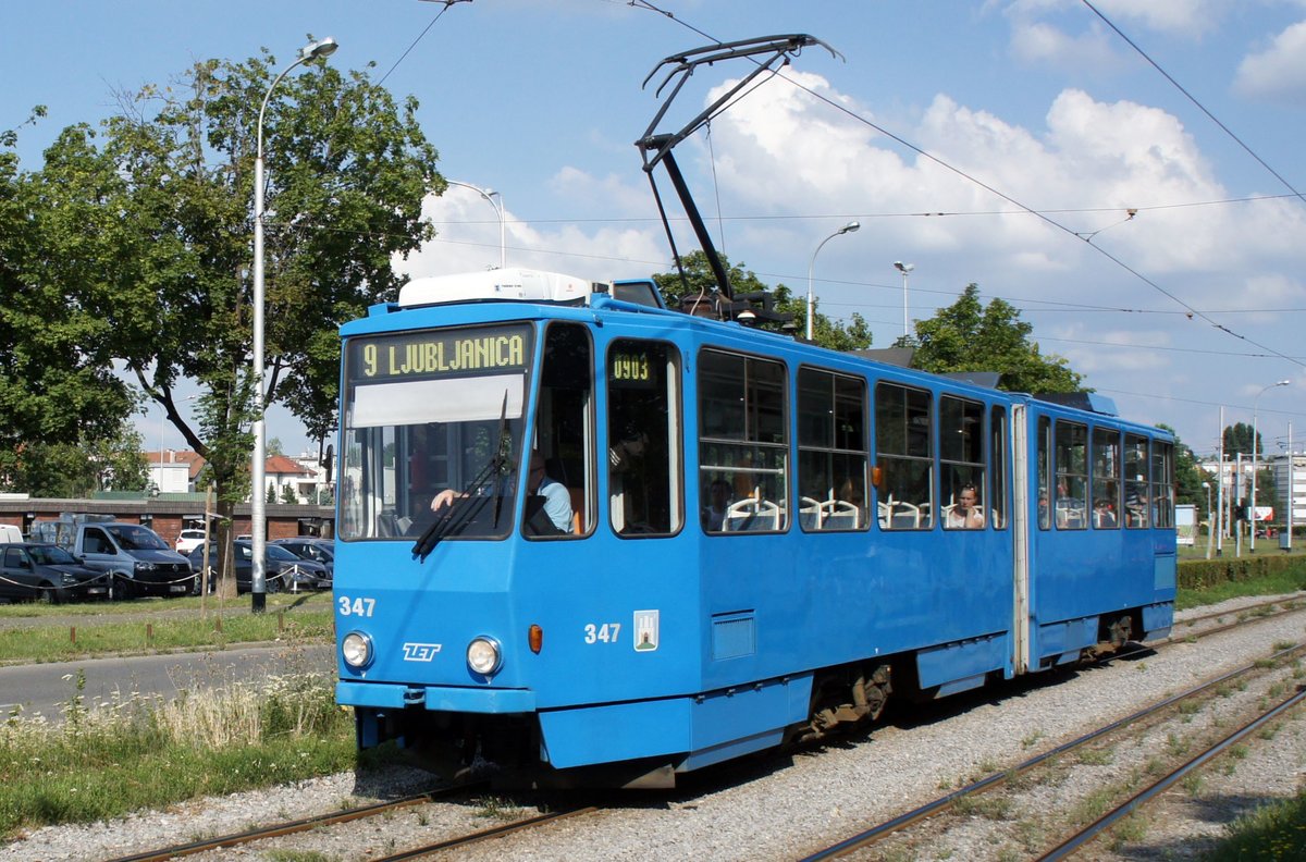 Kroatien / Straßenbahn Zagreb / Tramvaj Zagreb / Zagrebački Električni Tramvaj (ZET): Tatra KT4YU - Wagen 347, aufgenommen im Juni 2018 in der Nähe der Haltestelle "Borongaj" im Stadtgebiet von Zagreb.