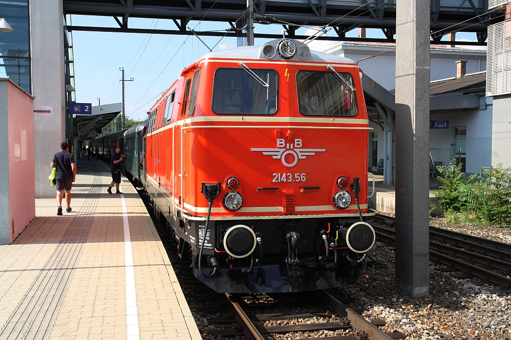 NLB 2143.56 am 07.Juli 2018 mit dem EZ nach Ernstbrunn im Bahnhof Korneuburg.