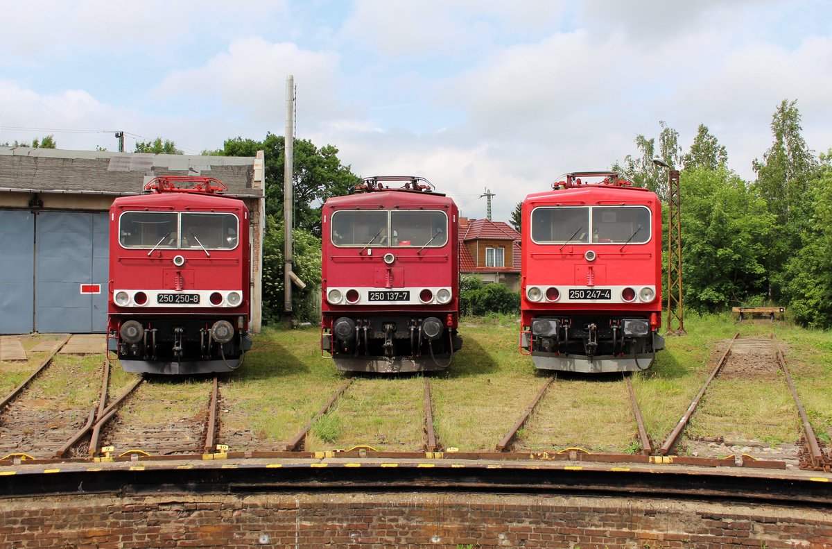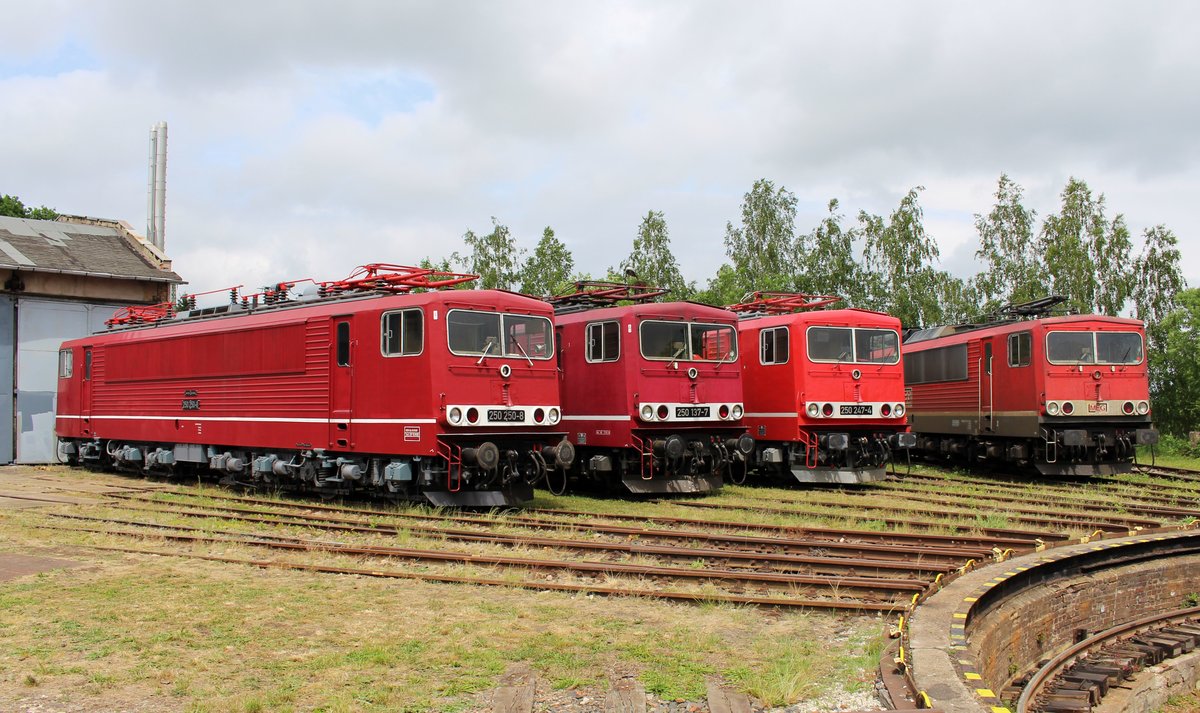 Vom 02.-03.06.18 fand beim TEV Weimar ein kleines DR E-Lok Treffen der Baureihe 250 statt. Ich war am 02.06.18 vor Ort und nutzte eine Wolkenlücke. Zu sehen waren 250 250-8 (TEV), 250 137-7(LEG) und 250 247-4 (LEG).