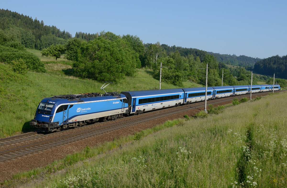 1216 237 mit RJ 73 "Bedrich Smetana" (Praha hl.n-Graz Hbf) Česká Třebová am 26.Mai 2018.