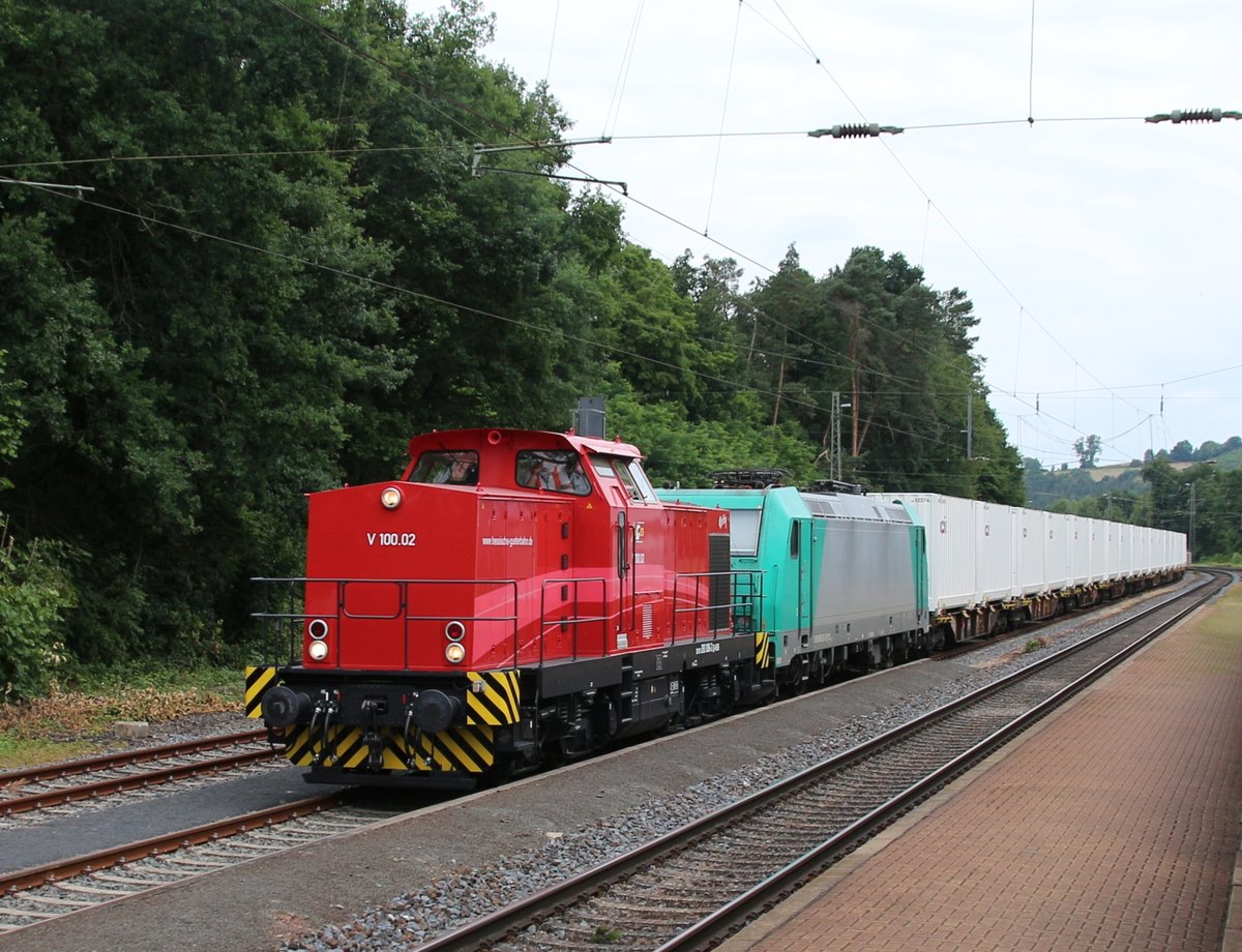 19.6.2018 Malsfeld-Beiseförth. V 100.02 der Hessischen Güterbahn mit 185 633 (ITL) aus umgeleitetem Fixtrain gesehen