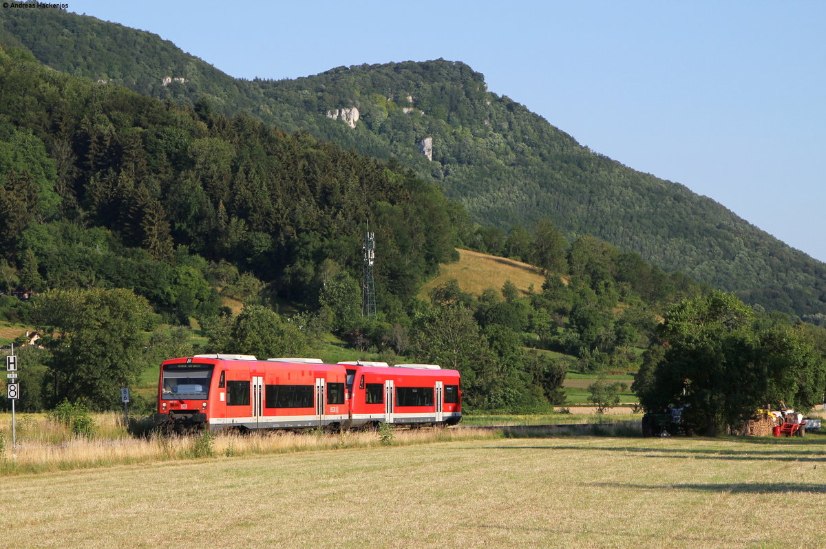 650 121-7 und 650 020-0 als RB 22966 (Tübingen Hbf-Bad Urach) bei Bad Urach 1.7.18