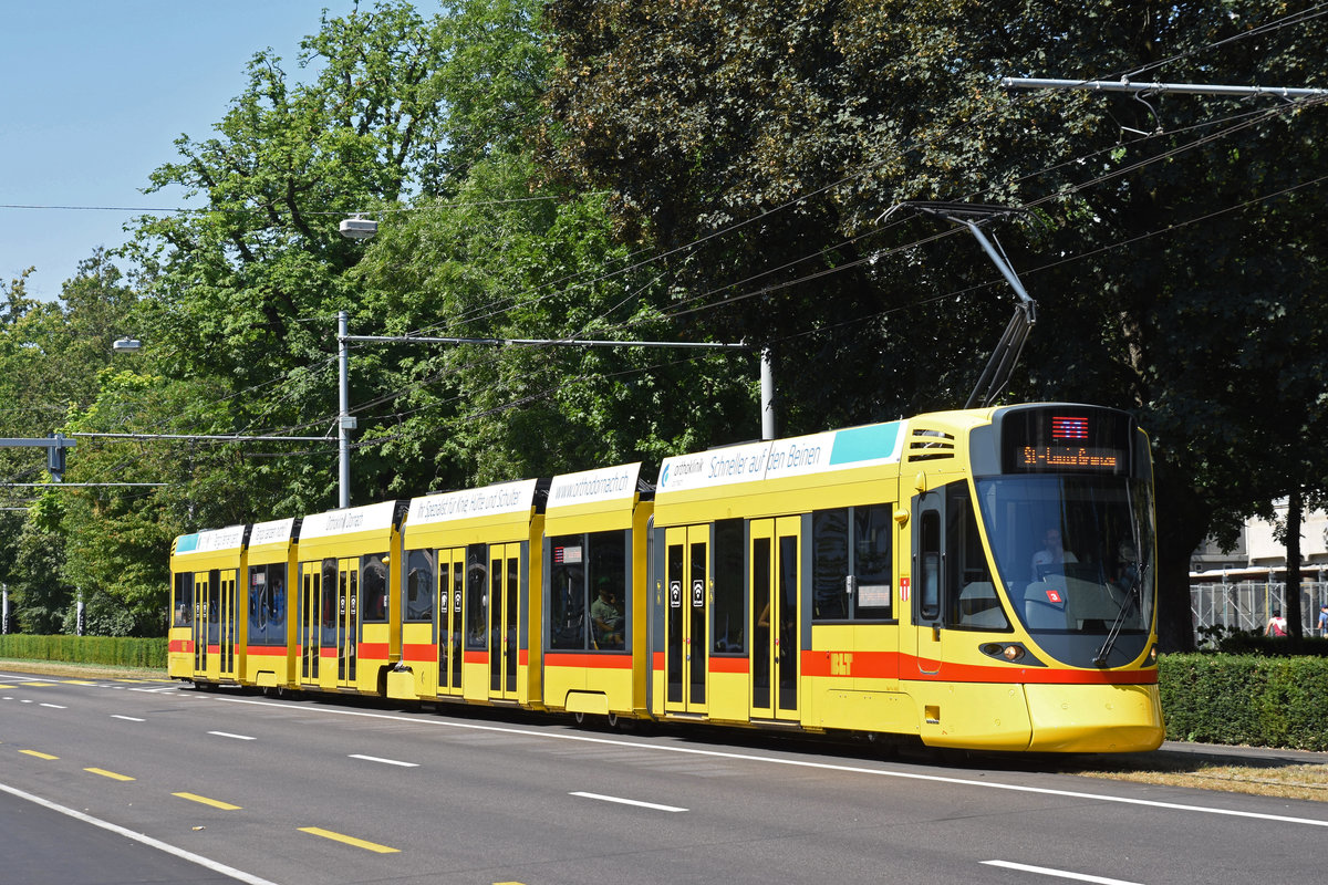 Be 6/10 Tango 165, auf der Linie 11, fährt zur Haltestelle Aeschenplatz. Die Aufnahme stammt vom 01.07.2018.