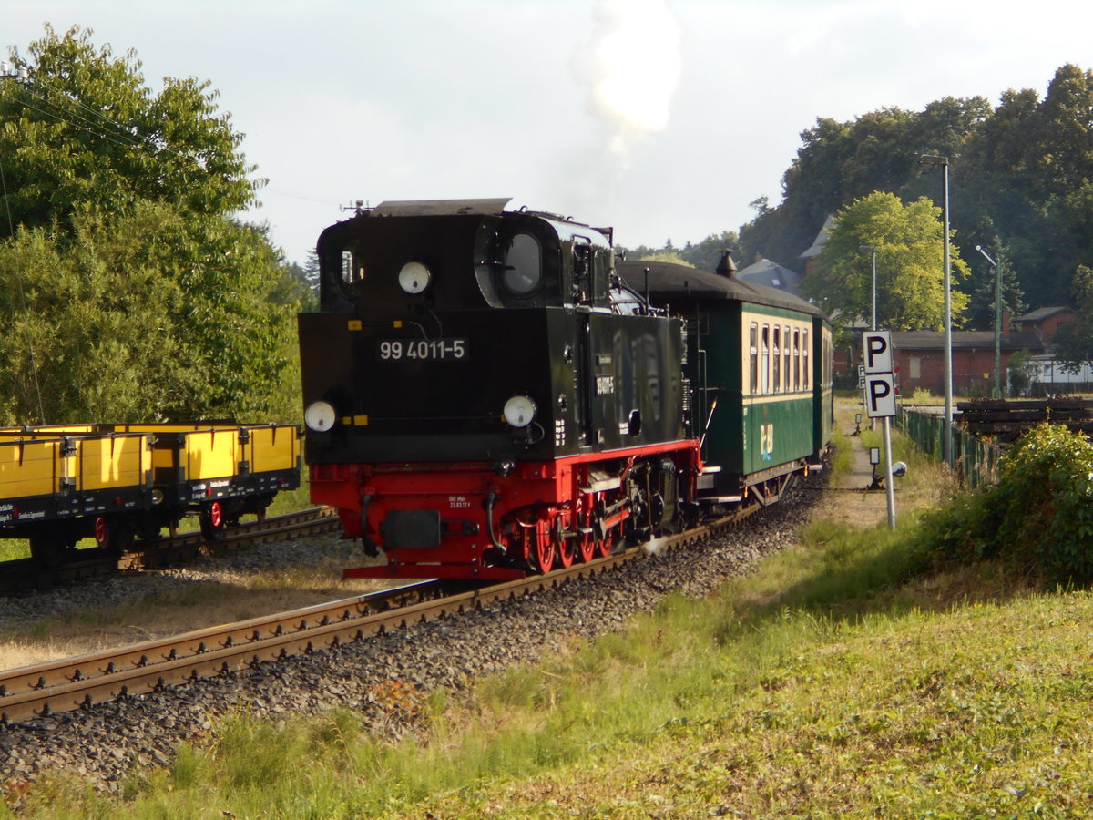 Der "Panzer" 99 4011,am 08.Juli 2018,bei der Ausfahrt aus Putbus.