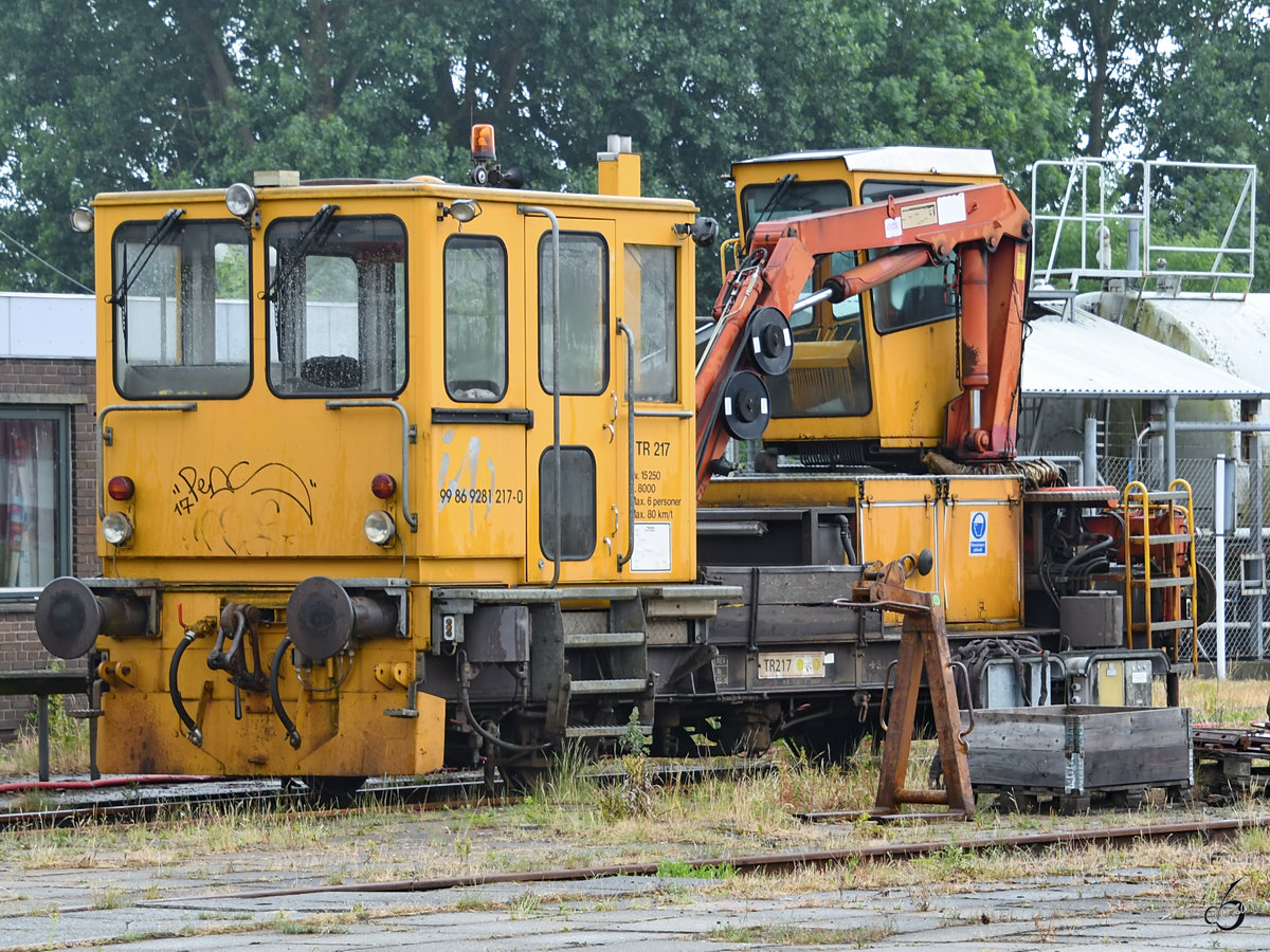 Ein weiteres Gleisbaufahrzeug TR 217 (99 86 9281 130-5) stand unweit des Bahnhofes in Aalborg. (Juni 2018)
