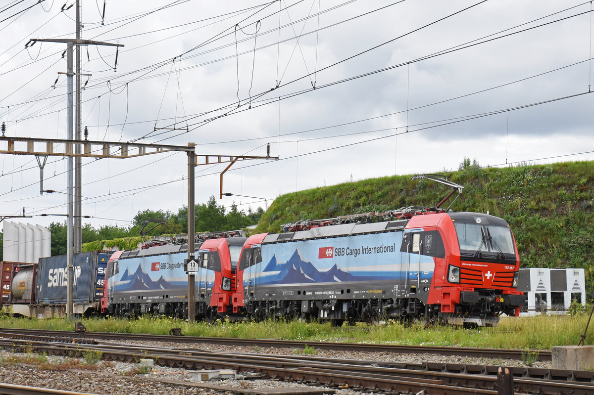Doppeltraktion, mit den Loks 193 467-8 und 193 471-0 durchfahren den Bahnhof Pratteln. Die Aufnahme stammt vom 12.06.2018.