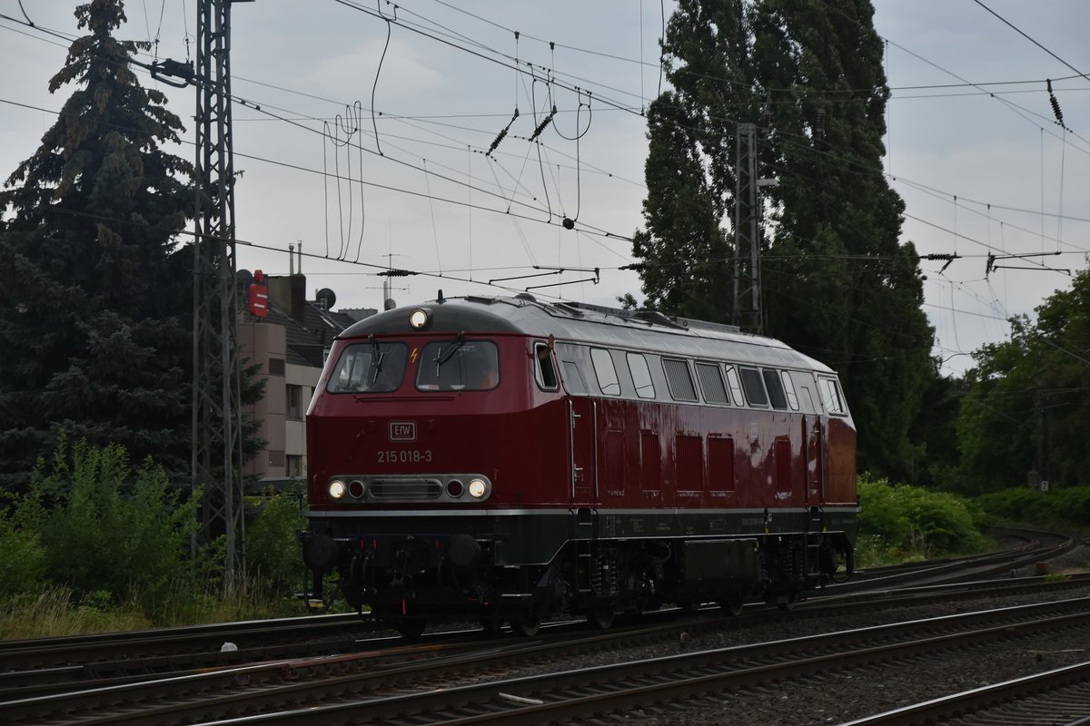 Es ist die EFW 215 018-3 die hier gen Mönchengladbach fährt. 9.7.2018