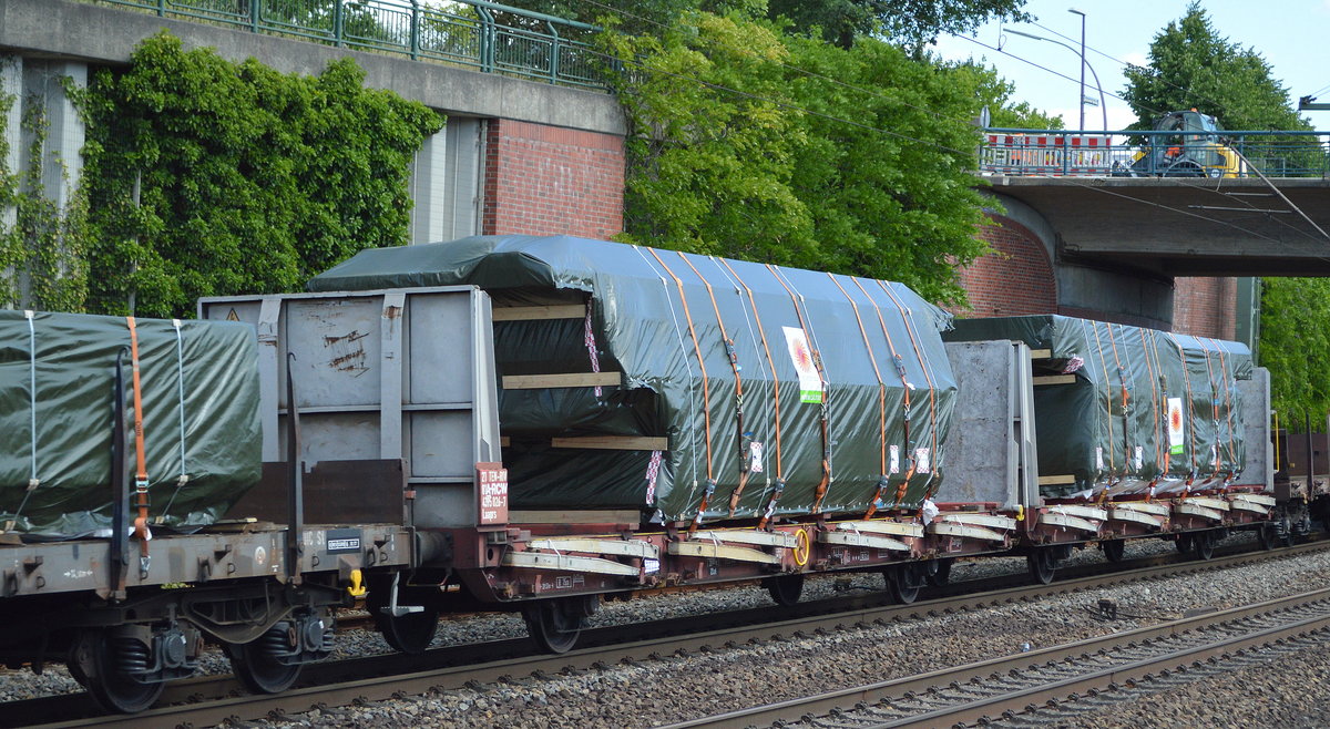 Österreichische Flachwageneinheit mit Rungen der Rail Cargo Austria/ÖBB mit der Nr. 21 TEN-RIV 81 A-RCW 4395 084-1 Laaprs mit interessantem Ladegut das mit Folie umwickelt ist am 30.06.18 in einem gemischten Güterzug Durchfahrt Hamburg-Harburg.