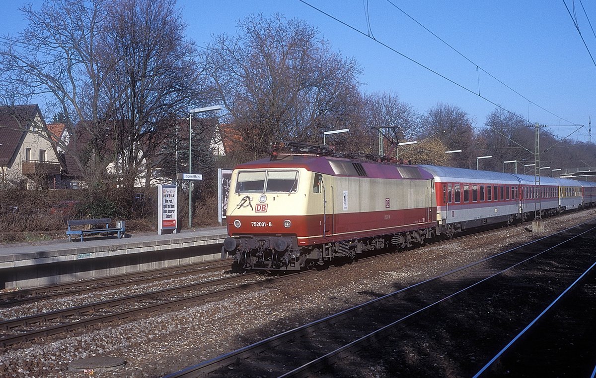 DB 218459 mit Güterzug bei Tornesch am 1.4.1994 um 9.25 Uhr in Fahrtrichtung Kiel.