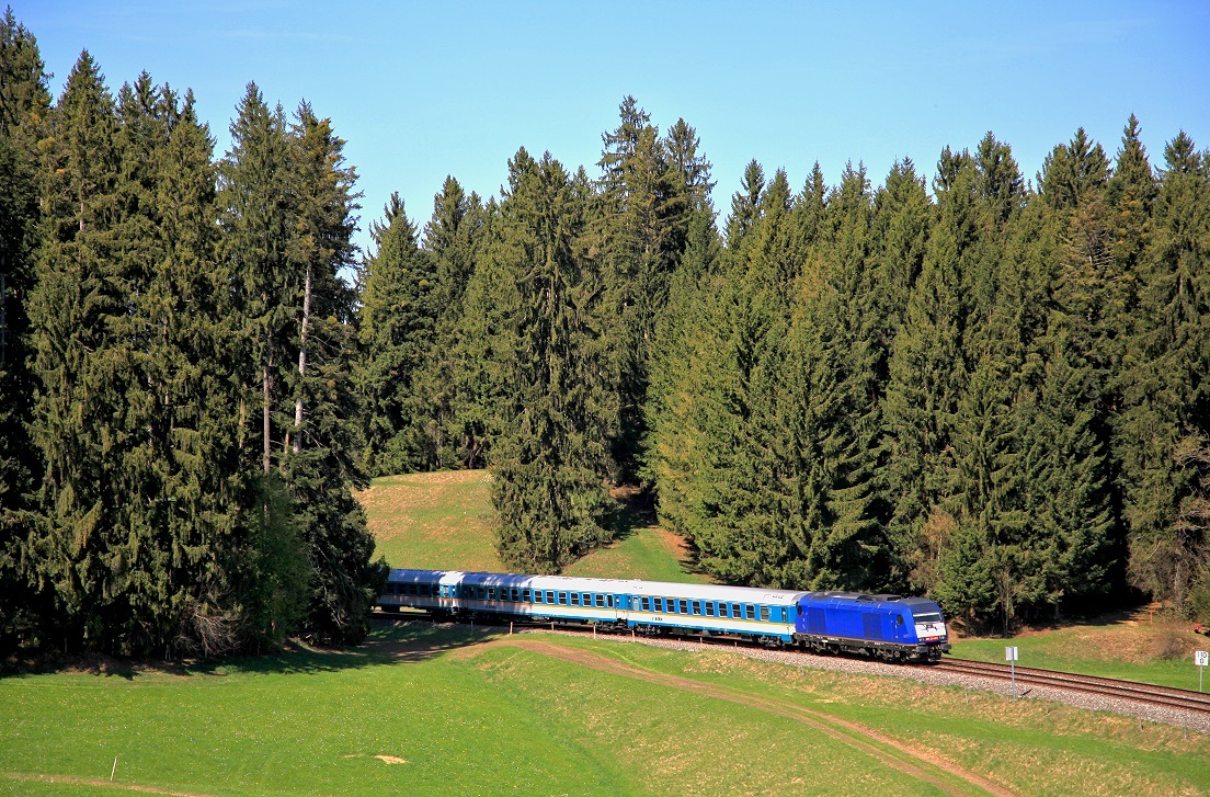 047 375 "Falcon" von Continental Railway Solution mit dem Sonderzug von Budapest nach Mürzzuschlag auf dem Krausel Klause Viadukt, kurz nach Breitenstein.