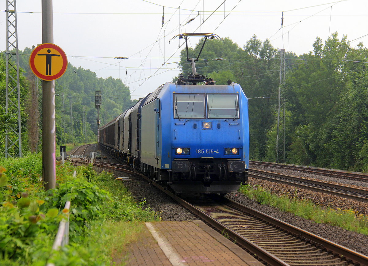 185 515-4 von Railtraxx kommt als Umleiter aus Richtung Aachen-West mit einem gemischten Güterzug aus Antwerpen-Waaslandhaven(B) nach Linz-Voestalpine(A) und fährt durch Kohlscheid und fährt in Richtung Herzogenrath,Neuss.