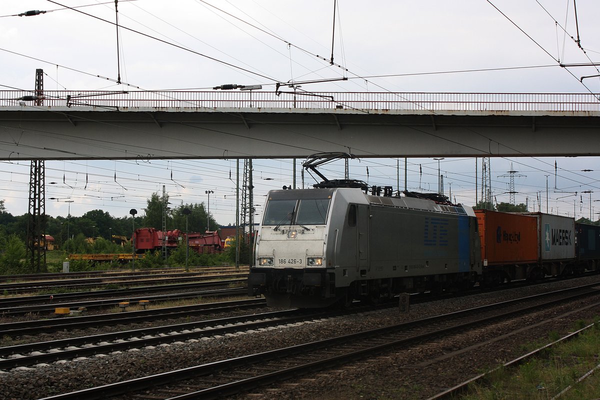 Die 186 426-3 von Railpool mit einem Güterzug vom Norden kommend durch Duisburg-Entenfang in Richtung Ratingen.