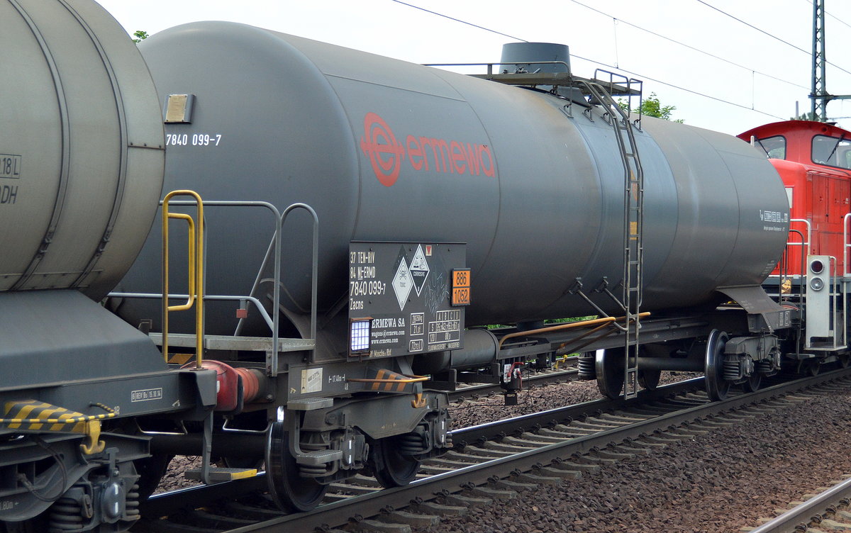 Kesselwagen vom Einsteller ERMEWA SA mit niederländischer Registrierung mit der Nr. 37 TEN-RIV 84 NL-ERMD 7840 099-7 Zacns (UN-Nr. 886/1052 = Fluorwasserstoff, wasserfrei) am 30.05.18 Dresden-Strehlen.