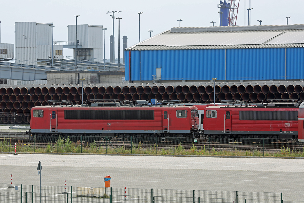Lok’s der BR 155 auf dem Abstellgleis in Sassnitz-Mukran. - 16.06.2018