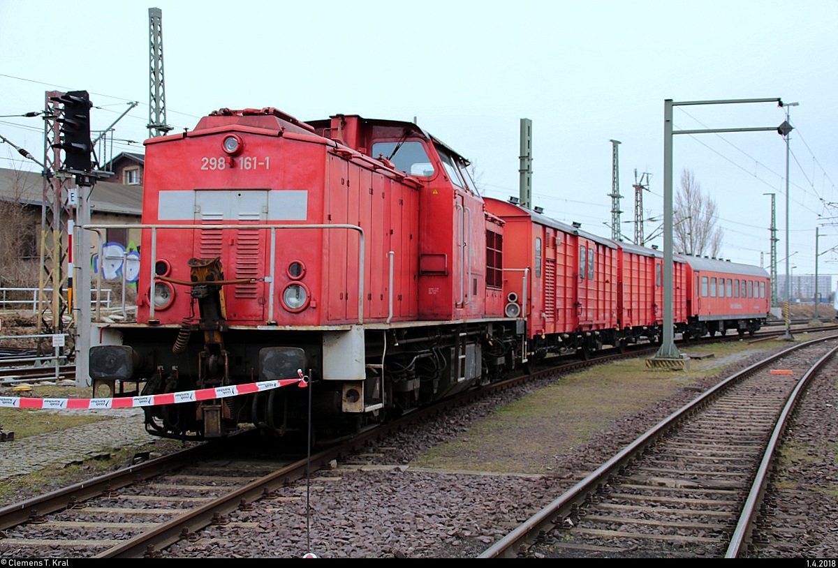 298 161-1 der Traditionsgemeinschaft Bw Halle P e.V. mit Rettungszug steht während des Osterfests im DB Museum Halle (Saale). [1.4.2018 | 11:18 Uhr]