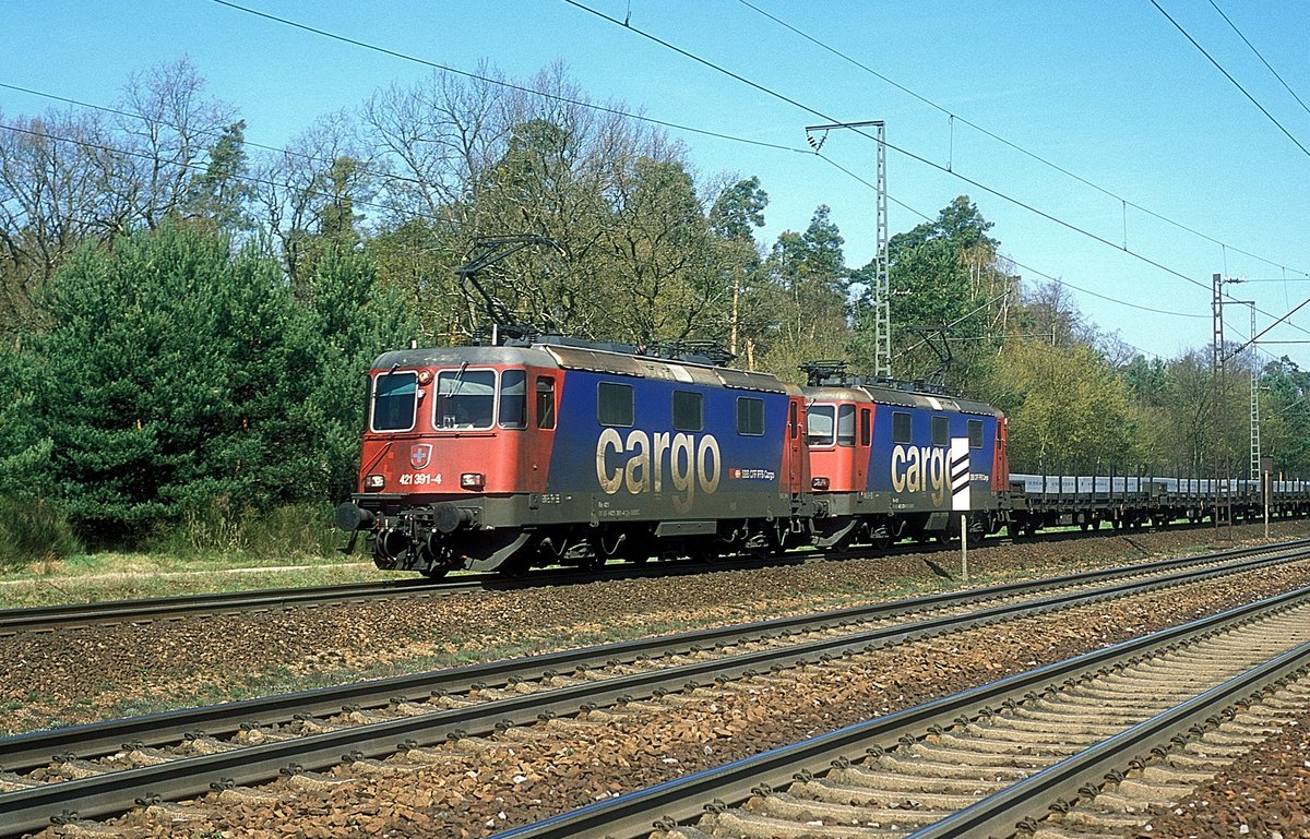 Durchfahrt am 28.03.2017 von der SBBC/SVG Re 421 390-6 mit ihrem leeren Schotterzug nach Marburg, als sie im Markgräflerland durch Müllheim (Baden) gen Frteiburg (Breisgau) fuhr.