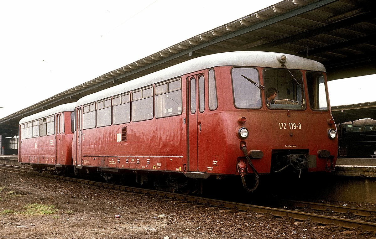 171013 steht hier am 19.2.1994 um 13.58 Uhr mit dem P 8684 in Richtung Elbingerode auf Gleis 2 im Bahnhof Blankenburg. Damals wurde dieses Gleis und der Bahnsteig noch genutzt. Seitdem der Personenverkehr auf der Rübelandbahn eingestellt ist, wird nur noch der Hausbahnsteig für Personenzüge angefahren!