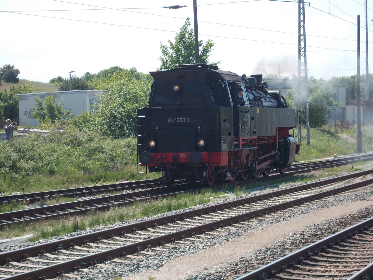 Die Dampflokomotive 354 195 Anfang April 2017 in Dresden-Altstadt.