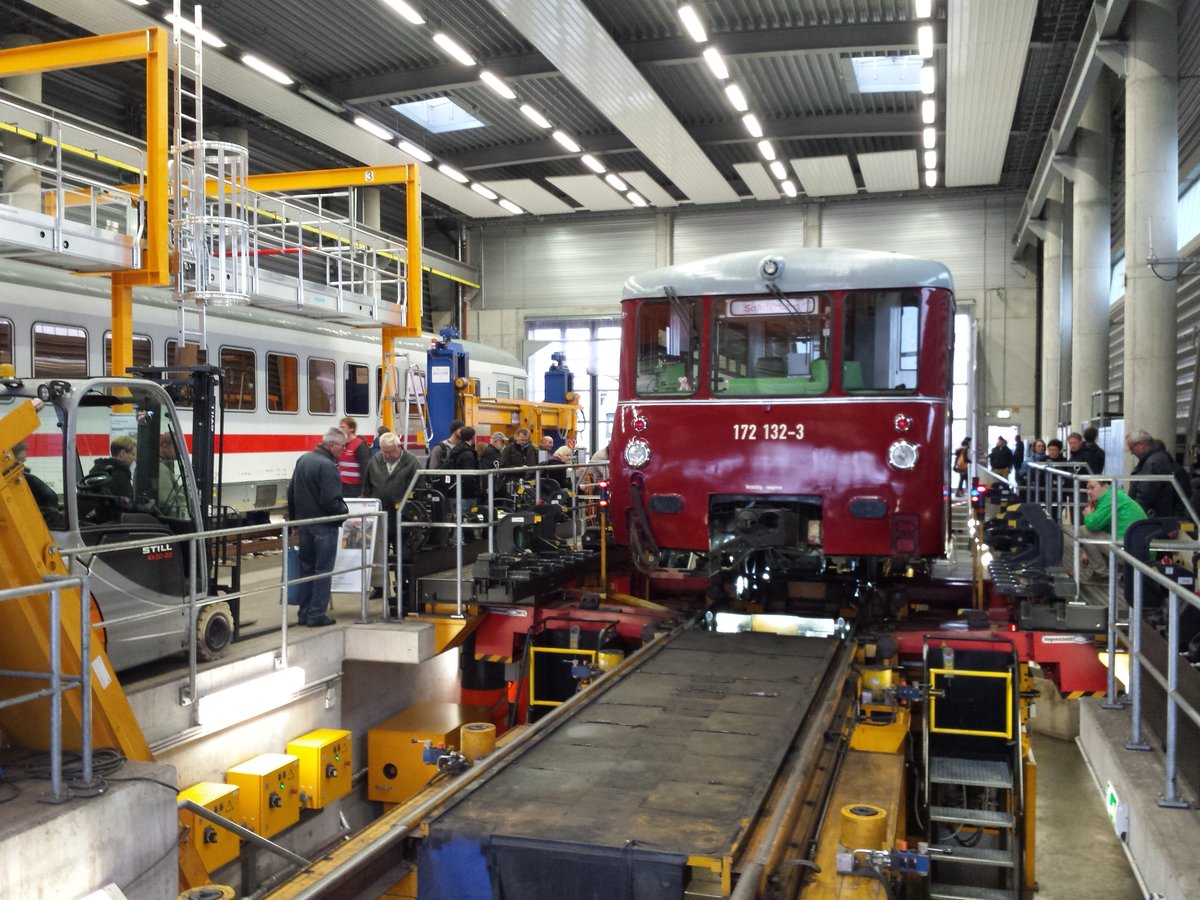 Am Tag der offenen Tür im ICE-Werk Leipzig konnte man am 10.11.2014 eine Ferkeltaxe beobachten, welche sich auf der URD befand, damit die Räder neu profiliert werden.