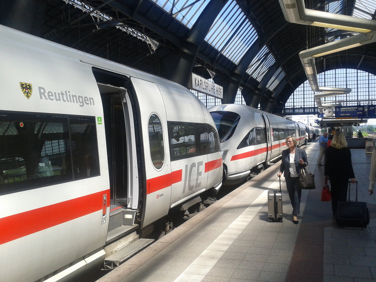 Bahnhofsimpression im Karlsruher Bahnhof und die Besonderheit, dass zwei ICE-T Züge der Baureihe 411 als Ersatz für einen ICE1 von Basel nach Berlin fuhren. Karlsruhe Hbf den 20.05.2014