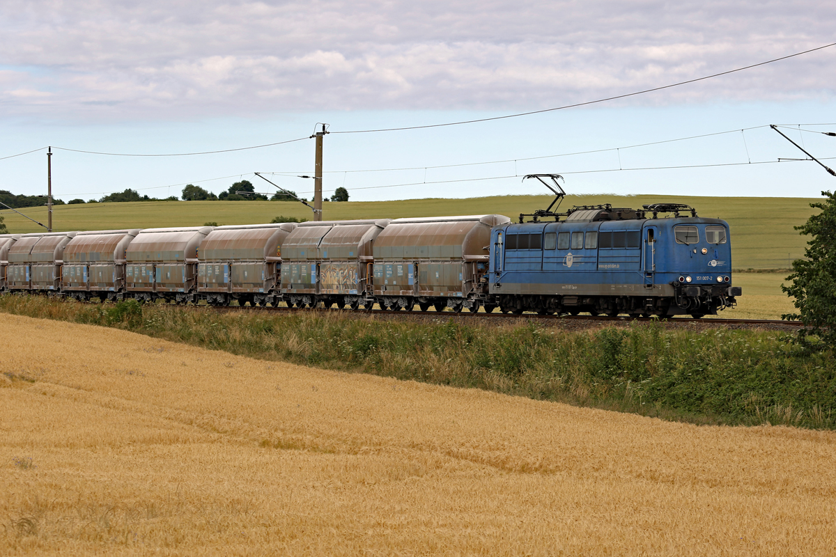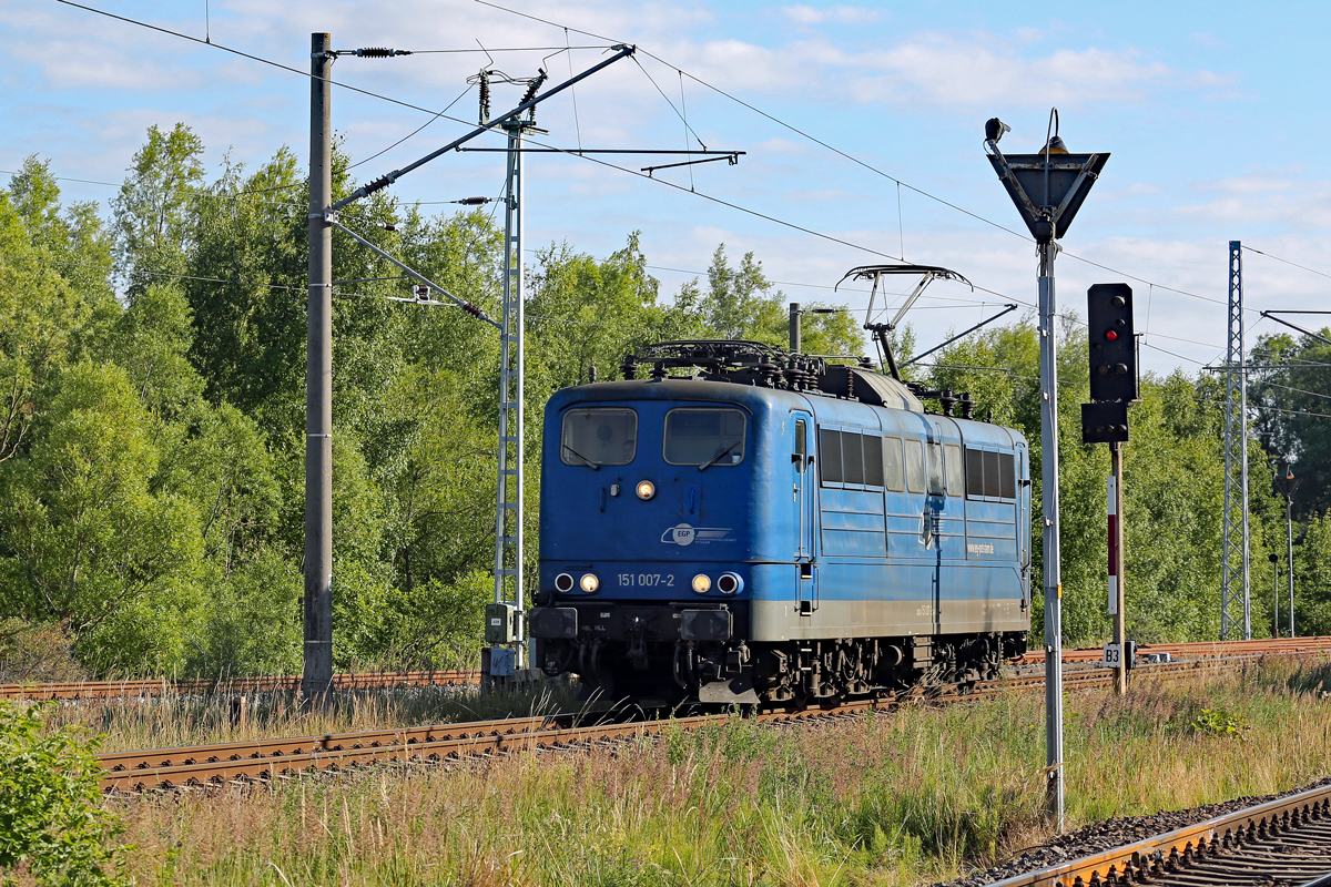 EGP Lok 151 007 mit dem ersten Teil eines Kreide-Zuges von Lancken nach Bergen auf Rügen. - 29.06.2018