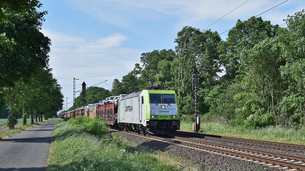 Zwei Belgierinnen von Lineas kommen mit einem leeren Kalkzug durch Rheydt gen Aachen West gefahren am Donnerstag den 31.5.2018