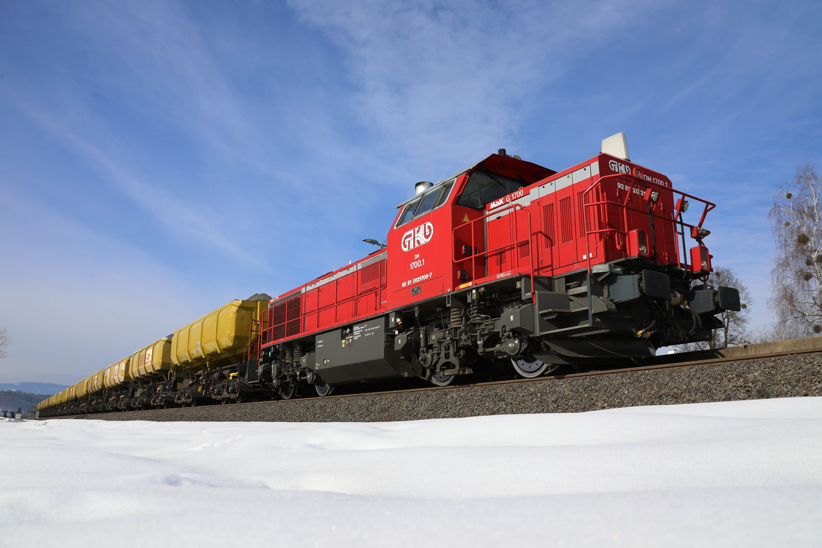 Am 10.03.2018 wartet DH 1700.1 die Zugbegegnung im Bahnhof Groß Sankt Florian ab.