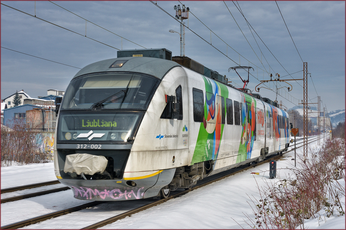 SŽ 312-002 fährt durch Maribor-Tabor Richtung Ljubljana. /7.3.2018