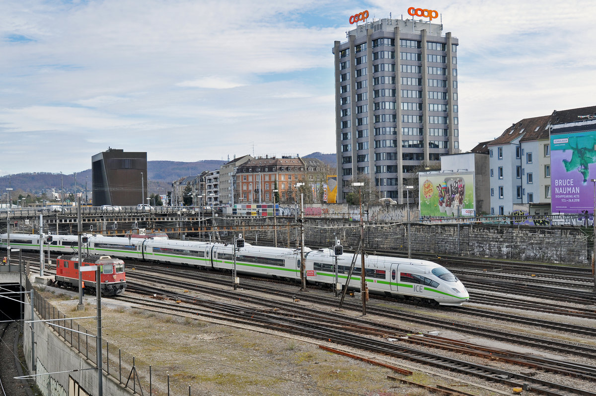 ICE 403 513-3 fährt beim Bahnhof SBB ein. Die Aufnahme stammt vom 08.03.2018.