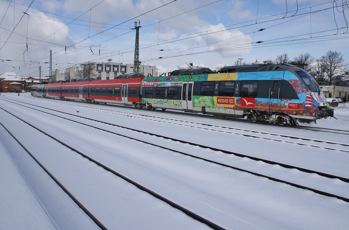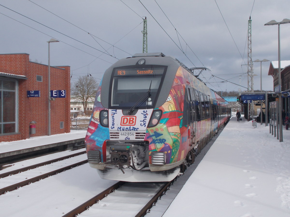 Am 25.Februar 2018 pendelte der Bunte Rostocker Hamster 442 854 zwischen Rostock und Sassnitz.Aufnahme in Bergen/Rügen.