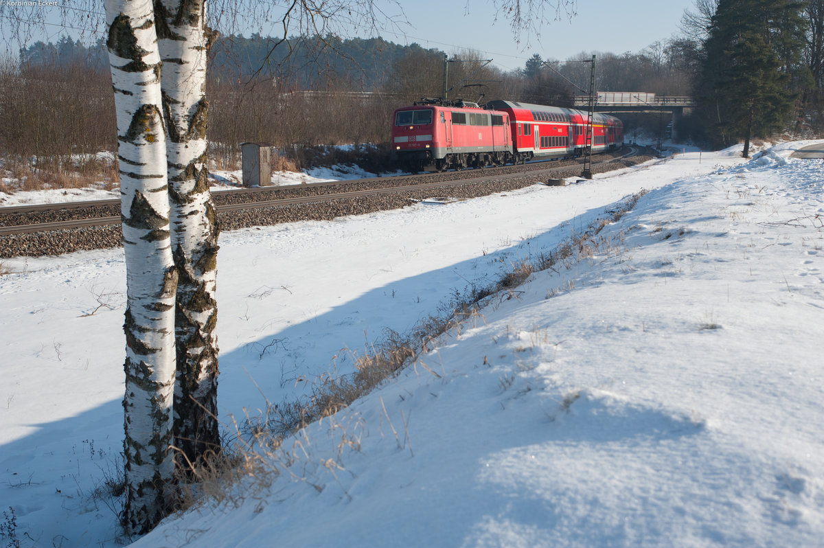 RE 4856 mit 111 197 aus München Hbf nach Nürnberg Hbf bei Sinngrün, 21.01.2017