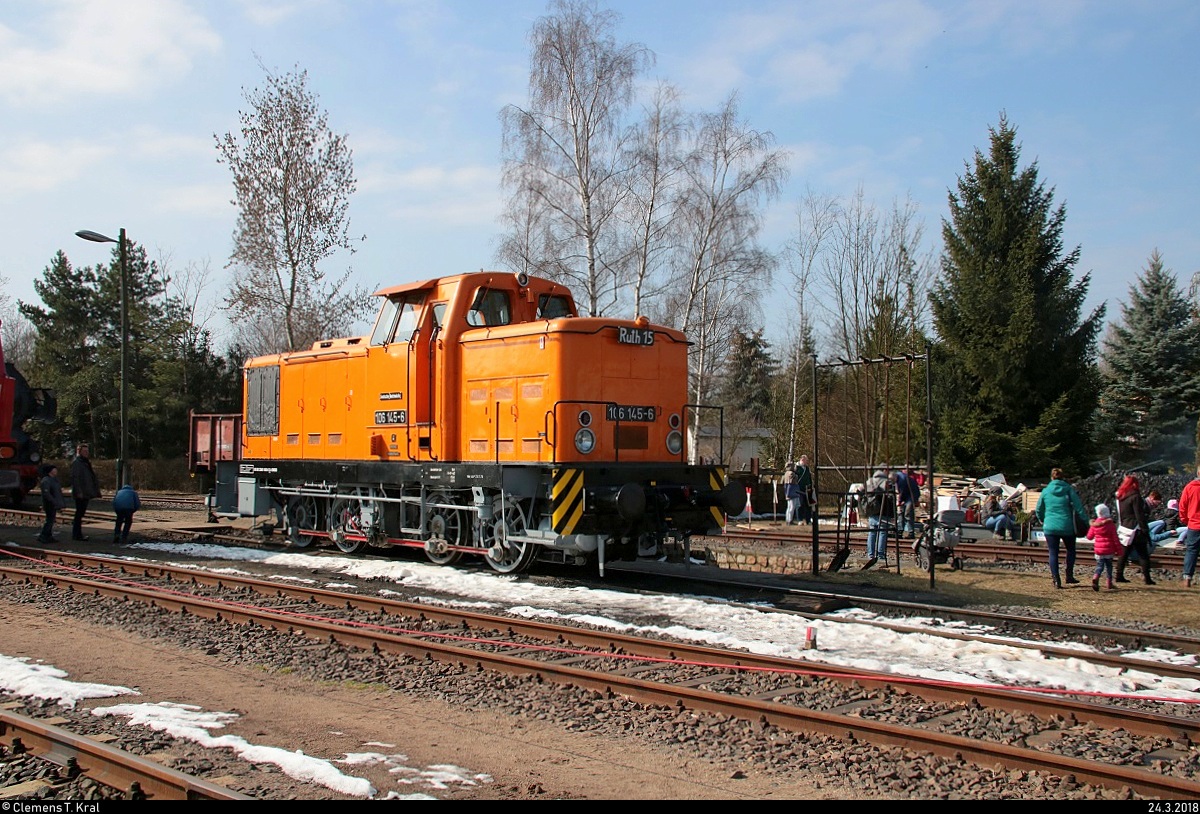 Die Belichtungszeit waren 10 Sekunden, wodurch die Lokomotive scharf, die Personen aber unscharf zu sehen sind. (01.05.2018)