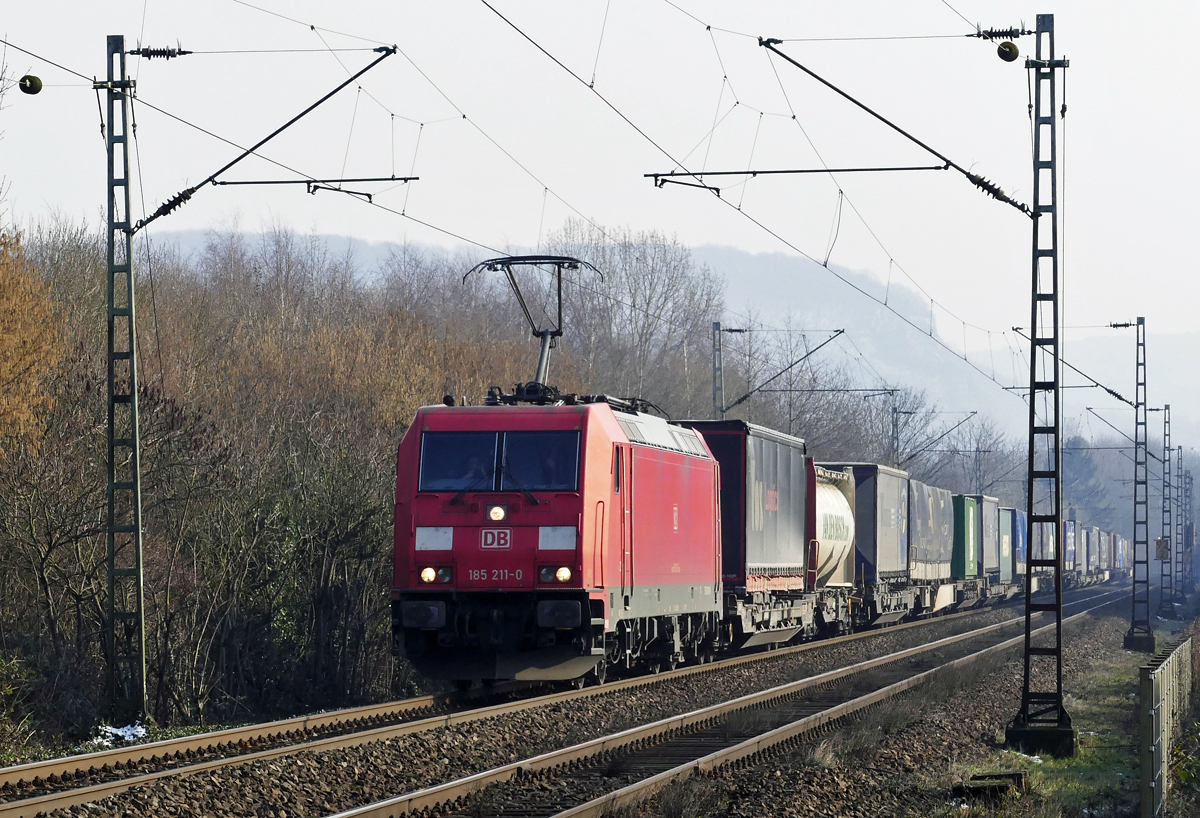 185 005-6 DB kommt mit einem gemischten Güterzug aus Mannheim-Gbf(D) nach Köln-Gremberg(D)