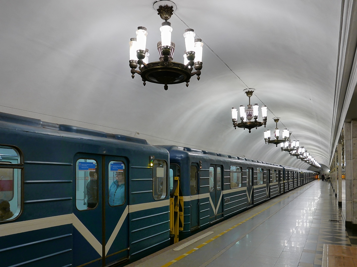 Zwischen den Plattformen: Die Bahnsteighalle der Station "Narwskaja" der Linie 1 der Metro St. Petersburg, 16.09.2017